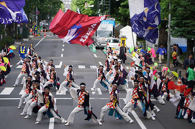 札幌の初夏の風物詩となった「YOSAKOIソーラン祭り」。北海道銀行では2005年に有志によるチームを立ち上げ、札幌市の老舗チーム「北海あほんだら会」と北陸銀行との合同チーム「北海あほんだら会&ほくほくフィナンシャルグループ」として、YOSAKOIソーラン祭りに参加しております。
